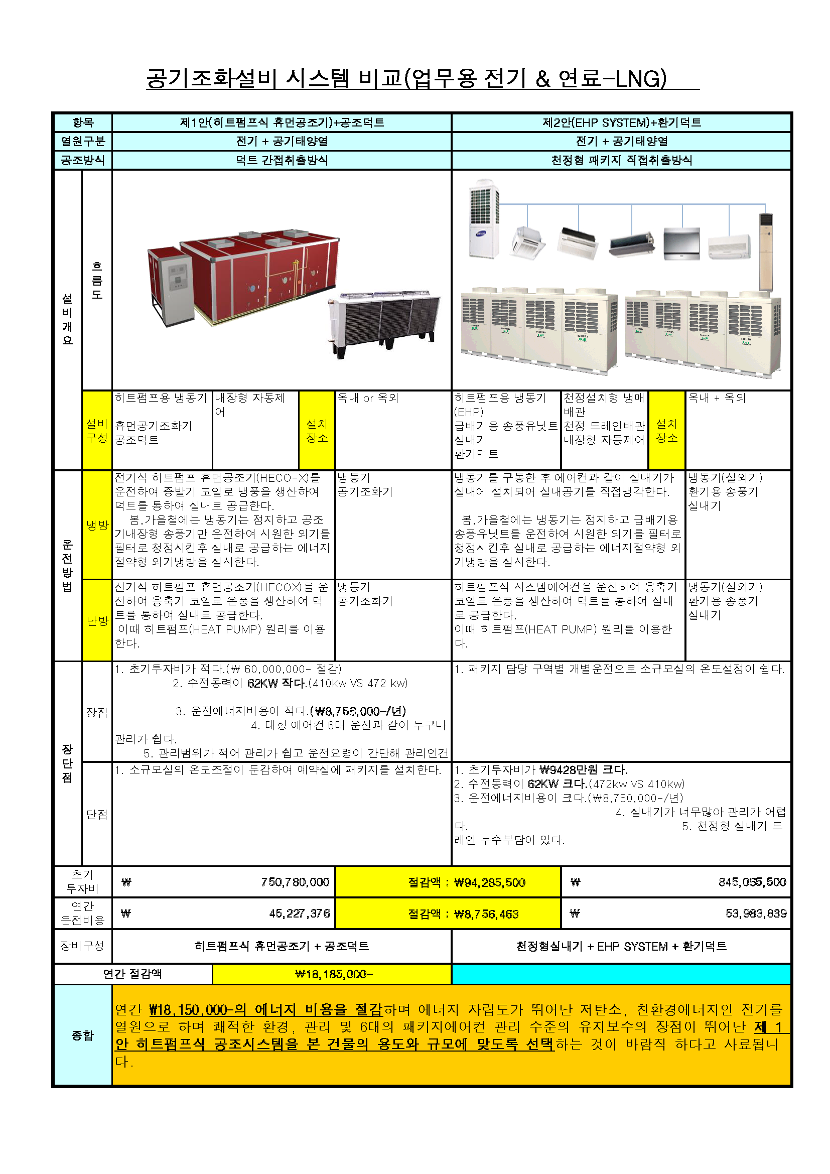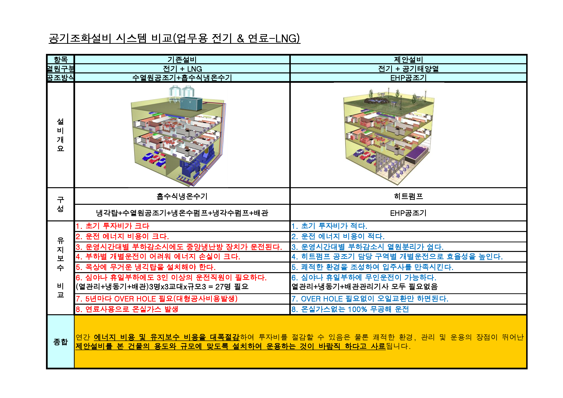 타공조기와 비교자료KOHVAC 휴먼공조기와 다른방식의 공조기에 대한 비교특성을 소개합니다. 전반적인 비교효과VS 유지보수VS 기존공조설비VS 타사히트펌프VS 흡수식공조기VS 지열원공조기VS GHP공조기VS EHP공조기VS EHP + 혼합 일반비교 (시공,공간,탄소배출,유지보수) 유지보수 및 시스템 비교 휴먼공조기 VS 기존공조설비 휴먼공조기 VS 타사 히트펌프 휴먼공조기 VS 흡수식공조기 경제성비교 휴먼공조기 VS 지열원공조기 경제성비교 휴먼공조기 VS GHP공조기 경제성비교 휴먼공조기 VS EHP공조기 경제성비교 휴먼공조기 VS EHP(+FCU)공조기 경제성비교